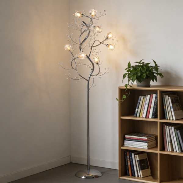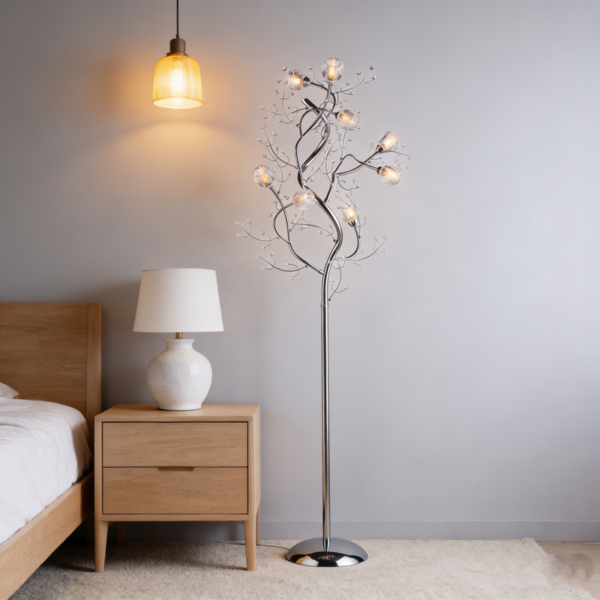 Article Series: MF0111-8 Organic Branch Sculptural Floor Lamp with Crystal Buds – Polished Chrome
