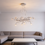The MP0111-12B redefines the traditional chandelier with its fluid, circular framework and hand-finished chrome branches. Featuring 12 refractive crystal buds that mimic dewdrops in the moonlight, this piece brings an organic yet sophisticated energy to grand dining rooms and luxury lobbies. A perfect blend of geometric precision and natural elegance.